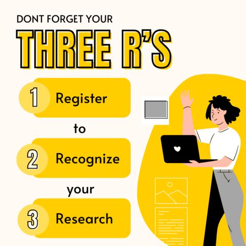 • Being involved with research on campus can start by registering your research for credit hours! It's often the first step to seeking opportunities and connecting with additional resources